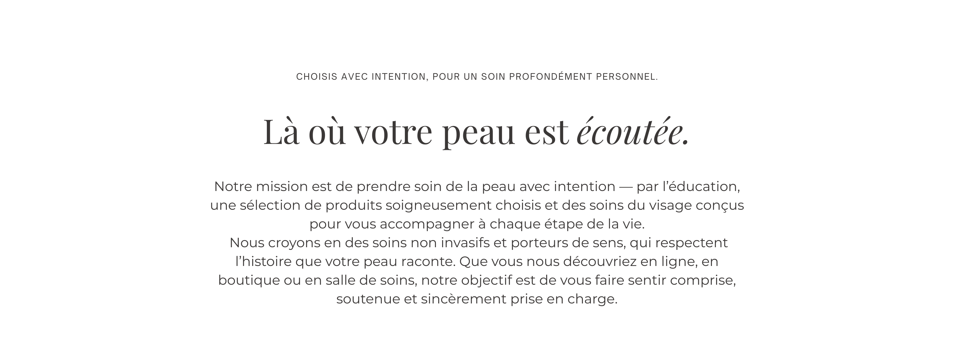 Nous vous accueillerons en personne et donnerons vie à l'histoire de votre peau. Venez découvrir notre approche personnalisée des soins de la peau.